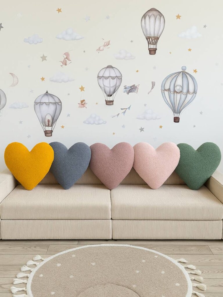 Они отлично подходят для активных игр, потому что весят всего 300 гр, украсят стильно детскую, а также отлично сочетаются с нашей мебелью так как имеют смежную ткань🧡