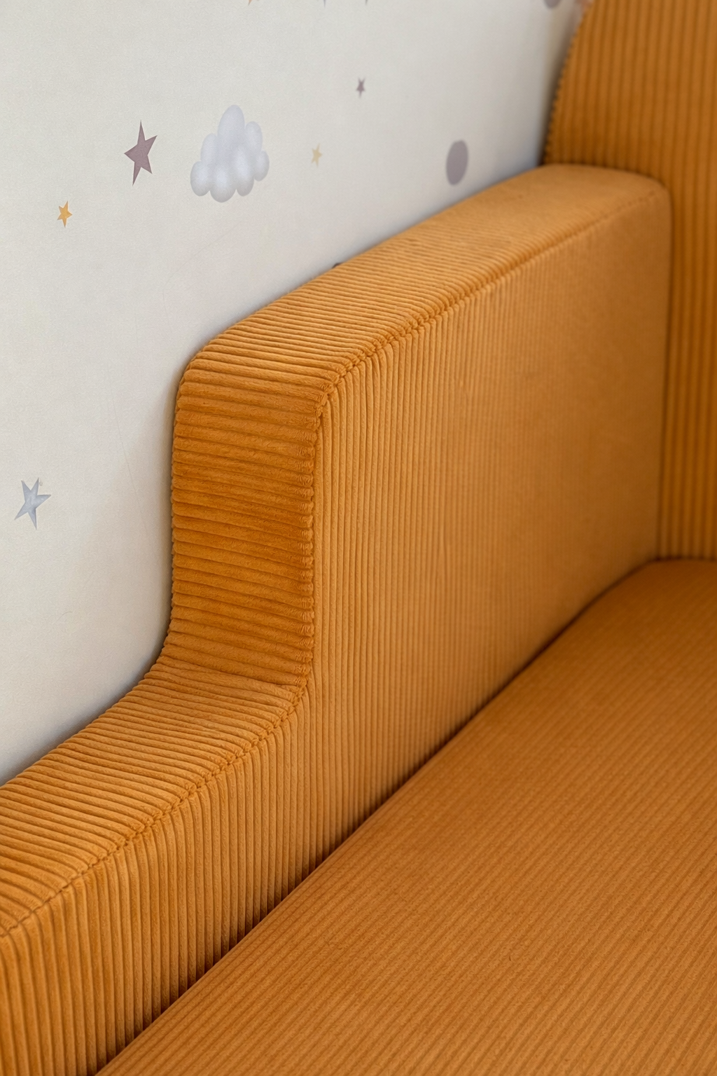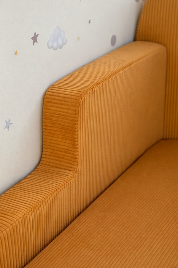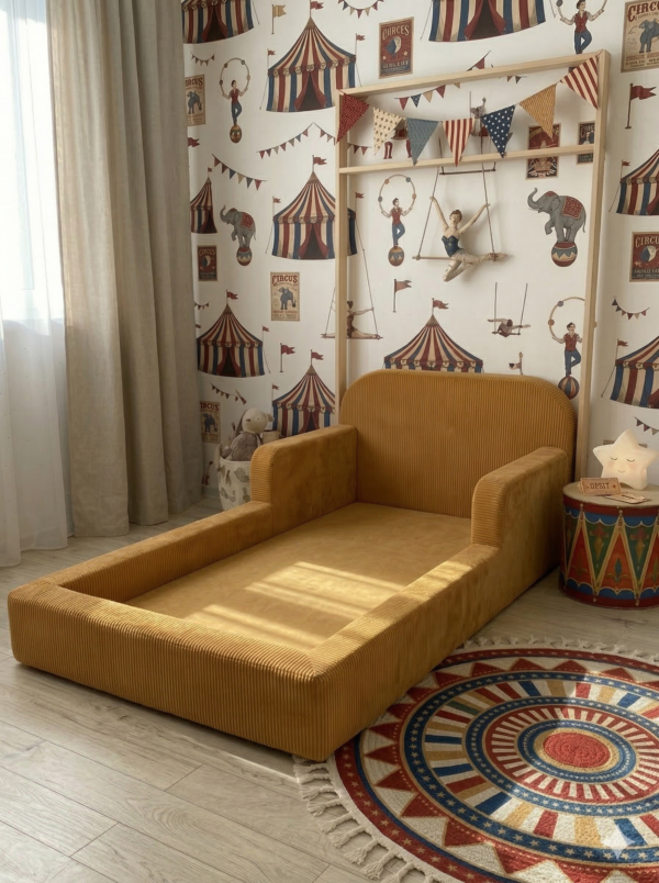 🎨 Эстетика Мы используем те же ткани, что и в дорогой взрослой мебели — нежнейшее Букле или фактурный Вельвет. Кровать не выглядит как «временная детская мебель», она становится стильным центром интерьера, который хочется фотографировать для Pinterest. 📸