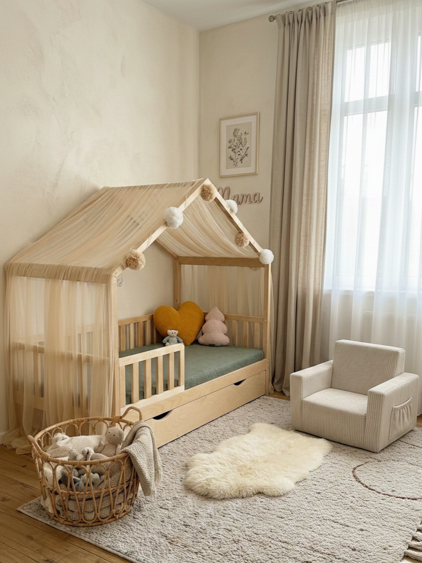 Безопасная высота: Малыш может сам забираться внутрь и слезать — это безопасно и развивает самостоятельность (Монтессори).