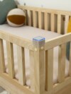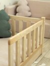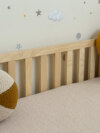 Добавьте безопасность (Рекомендуем для малышей от 1 года): Закажите комплект передних съемных бортиков. Их высота 30 см (оптимально для защиты от падения), а расстояние между рейками — безопасные 4 см. Бортики универсальные: вы сможете переставить их на левую или правую сторону по мере роста ребенка.