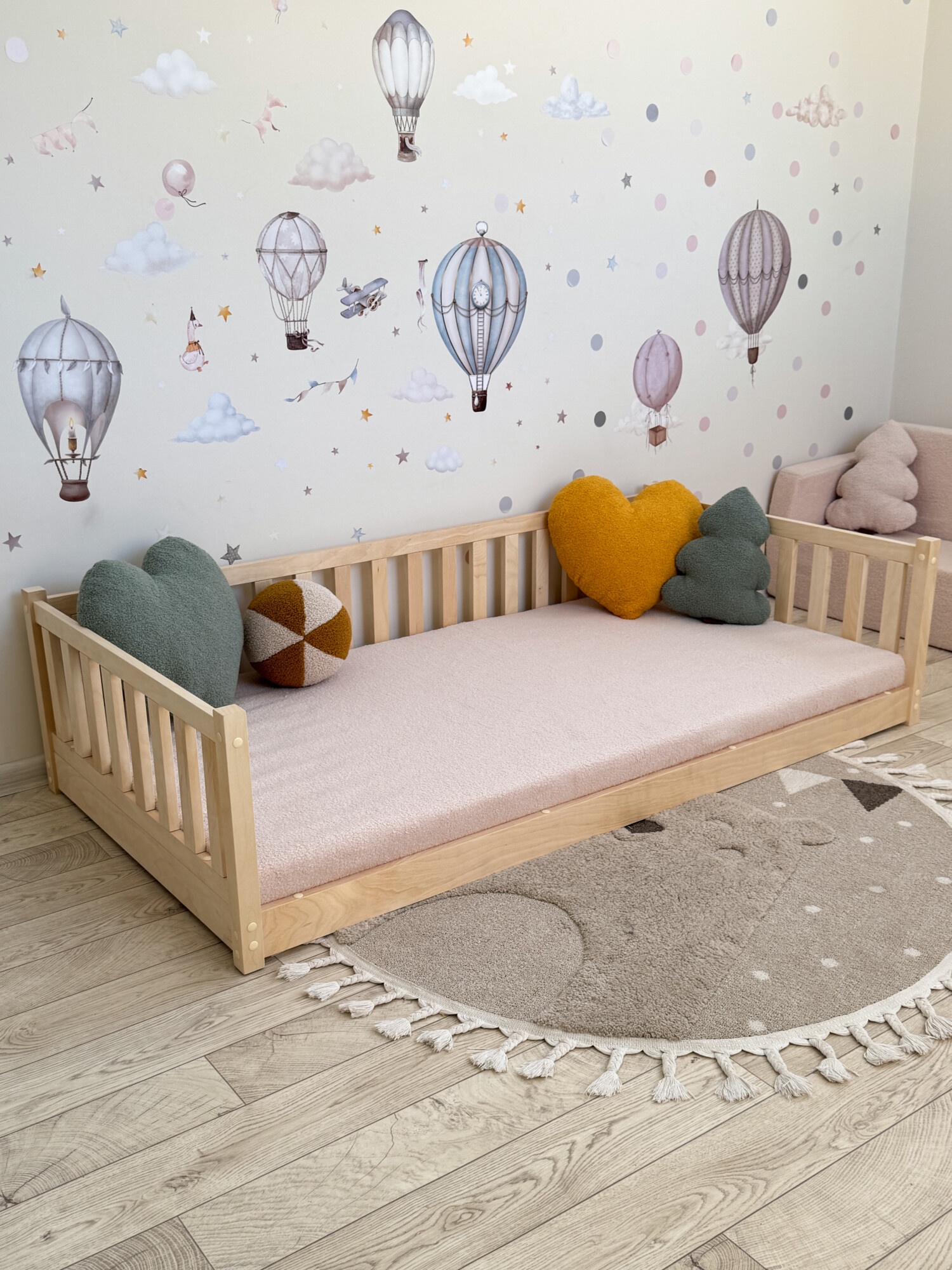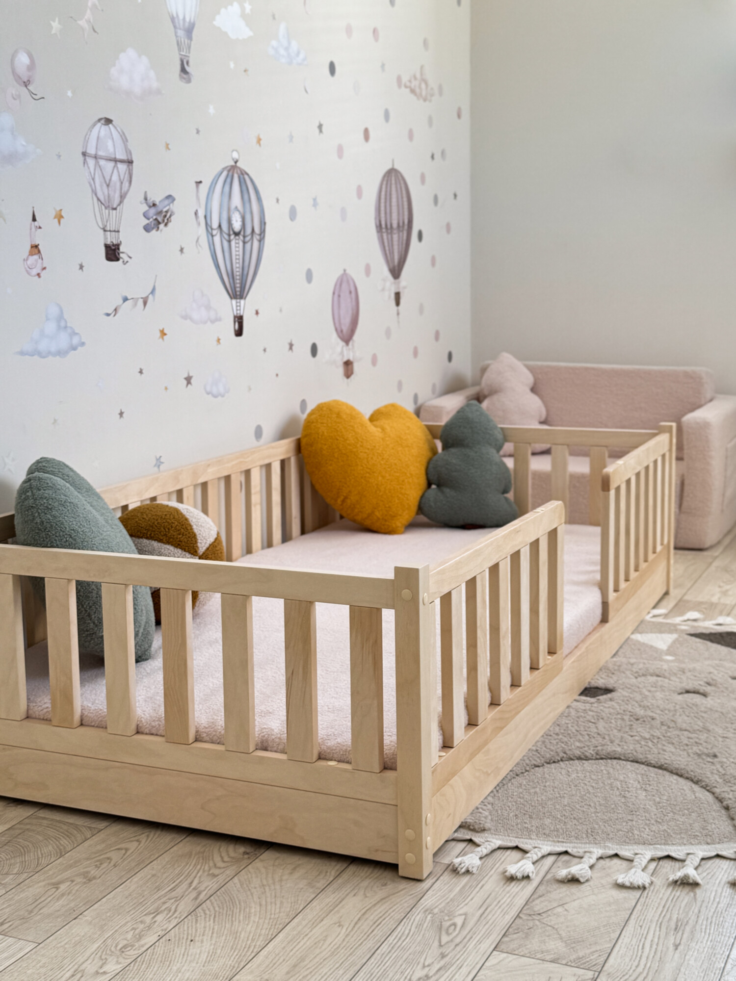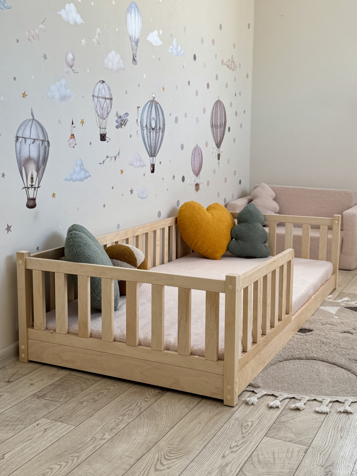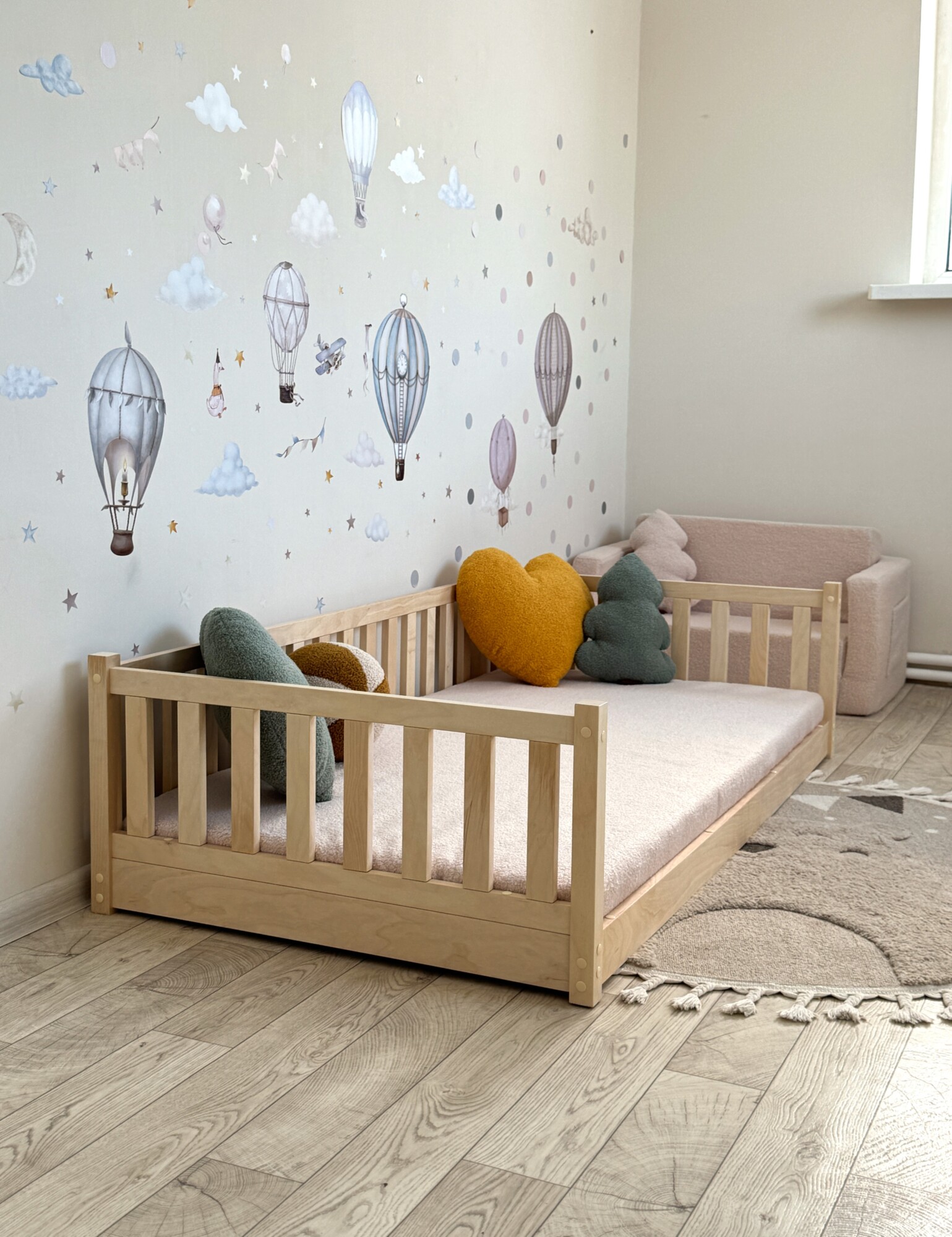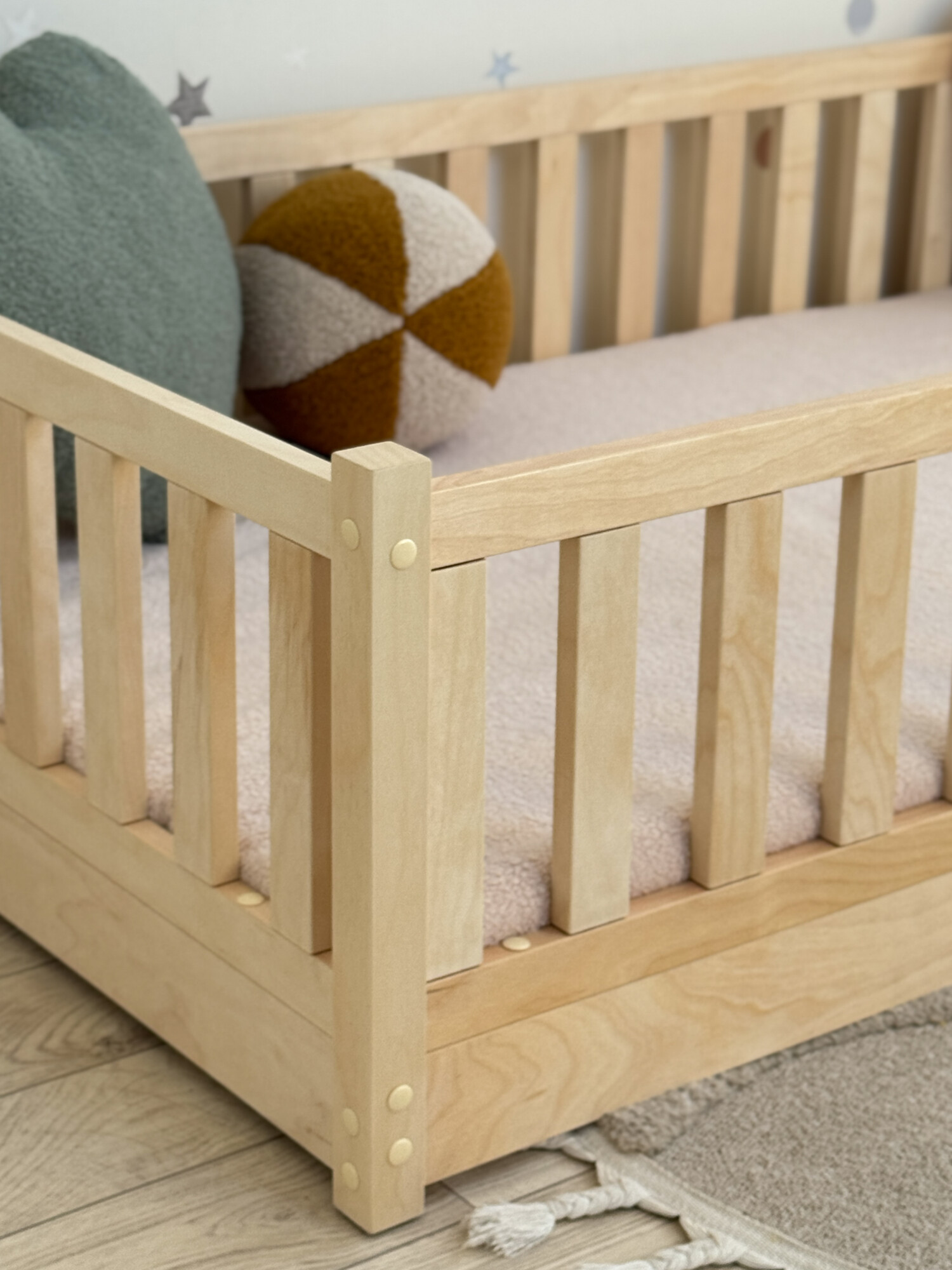 Представьте детскую комнату, залитую мягким светом, где каждая деталь дышит теплом и уютом... Такую, как на самых вдохновляющих картинках в Pinterest. Наша кроватка-монтессори создана, чтобы стать сердцем именно такой комнаты.