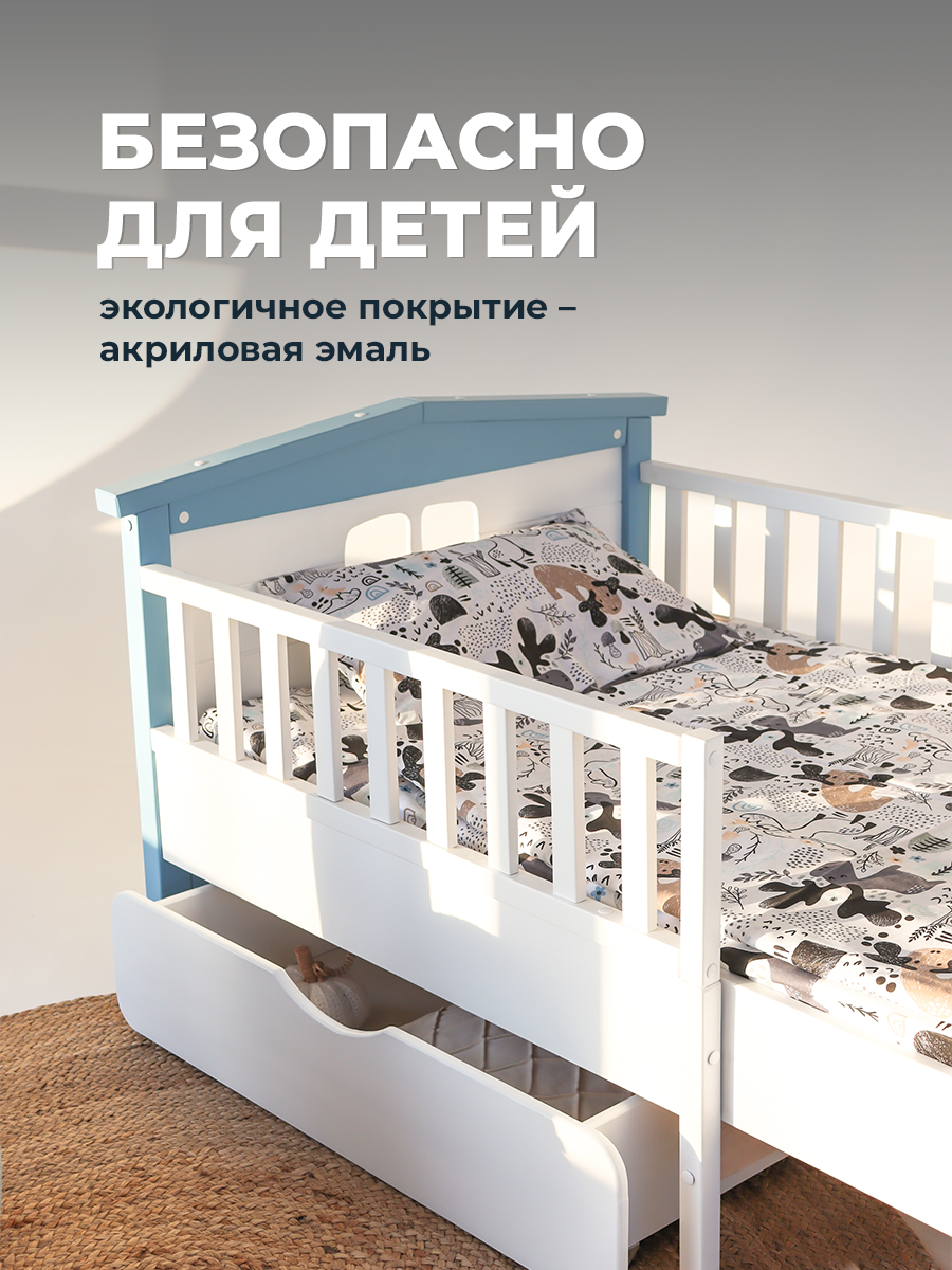 - Удобство и функциональность: Кровать оснащена съемным бортиком, который обеспечивает дополнительную безопасность для вашего малыша. В первый год жизни, можно ставить 2 бортика, а позже оставить 1 или убрать оба. Вместительный ящик позволит хранить пастельное белье, игрушки и все необходимые вещи, которые нужно быстро спрятать, чтобы комната всегда оставалась аккуратной и уютной.