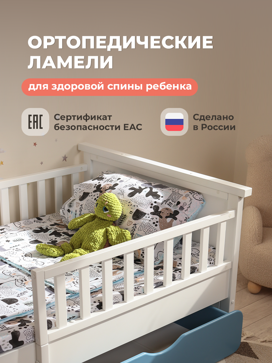 - Безопасность и надежность. Изготовленная из натуральной березы, детская раздвижная кровать обеспечивает высокую прочность и долговечность, имеет сертификаты ГОСТ и ТС. Отсутствие острых углов и использование экологически безопасных материалов делают ее идеальным выбором для заботливых родителей. Натуральное дерево благоприятно влияет на микроклимат в комнате, не выделяет вредных веществ и подходит даже для малышей, склонных к аллергии.