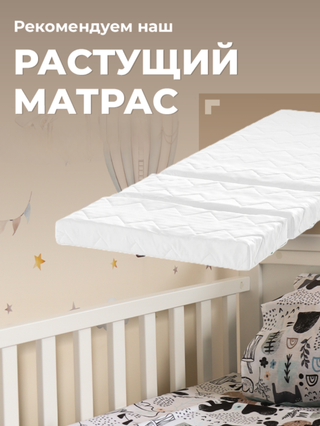 - Совместимость с аксессуарами. Мы рекомендуем наш растущий матрас — это универсальное решение для детской кровати, которое «растёт» вместе с ребёнком. Благодаря модульной конструкции матрас легко удлиняется от 130 до 180 см и подходит детям от 2 до 16 лет.