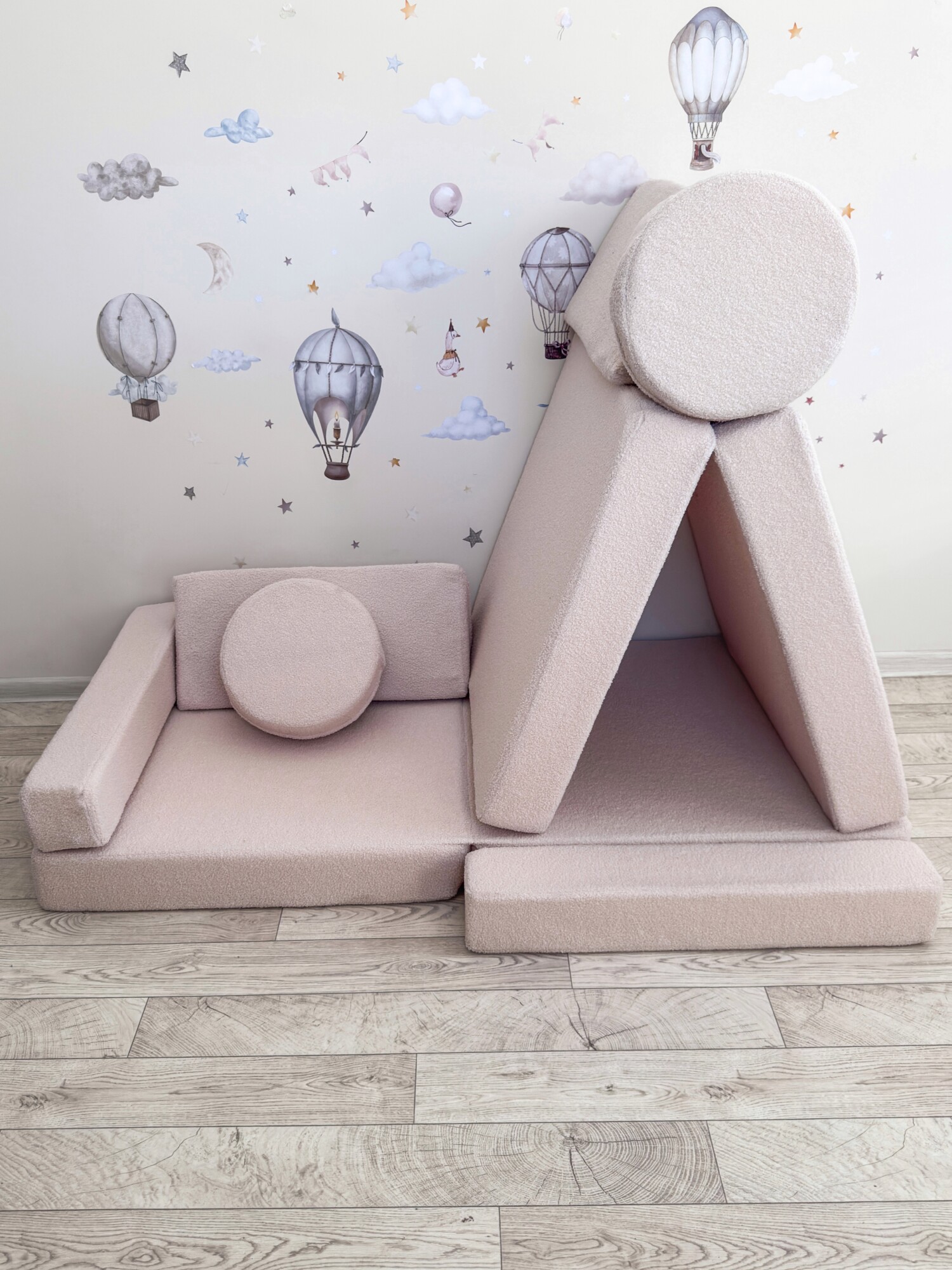 Этот диван способен принимать более 9 различных форм, стимулируя воображение и творческое мышление детей. Он легко превращается в замок, вигвам, корабль или ракету, предоставляя бесконечные возможности для игр и отдыха.