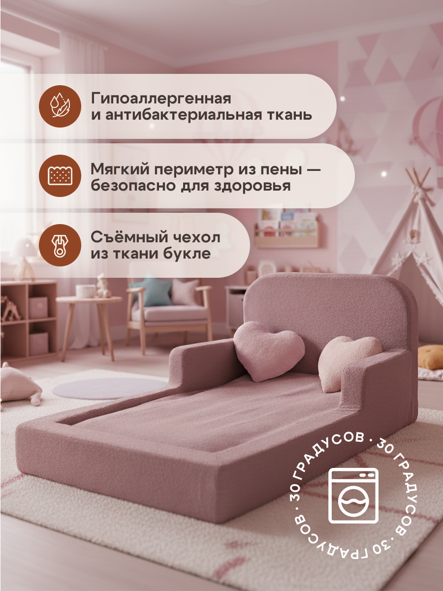 Детская бескаркасная кровать монтессори 160×80 состоит из мягкого изголовья и боковин из пены. Обивка изысканной тканью букле, обеспечивает мягкое прикосновение и удивительный дизайн. Кровать Монтессори была построена таким образом, чтобы способствовать физическому, умственному и эмоциональному развитию ребенка, а также дать ему возможность самостоятельно ложиться и вставать с кровати в любое время. Безопасность является решающим моментом, поскольку высота кровати позволяет вашему малышу безопасно входить и выходить из нее без риска несчастных случаев.