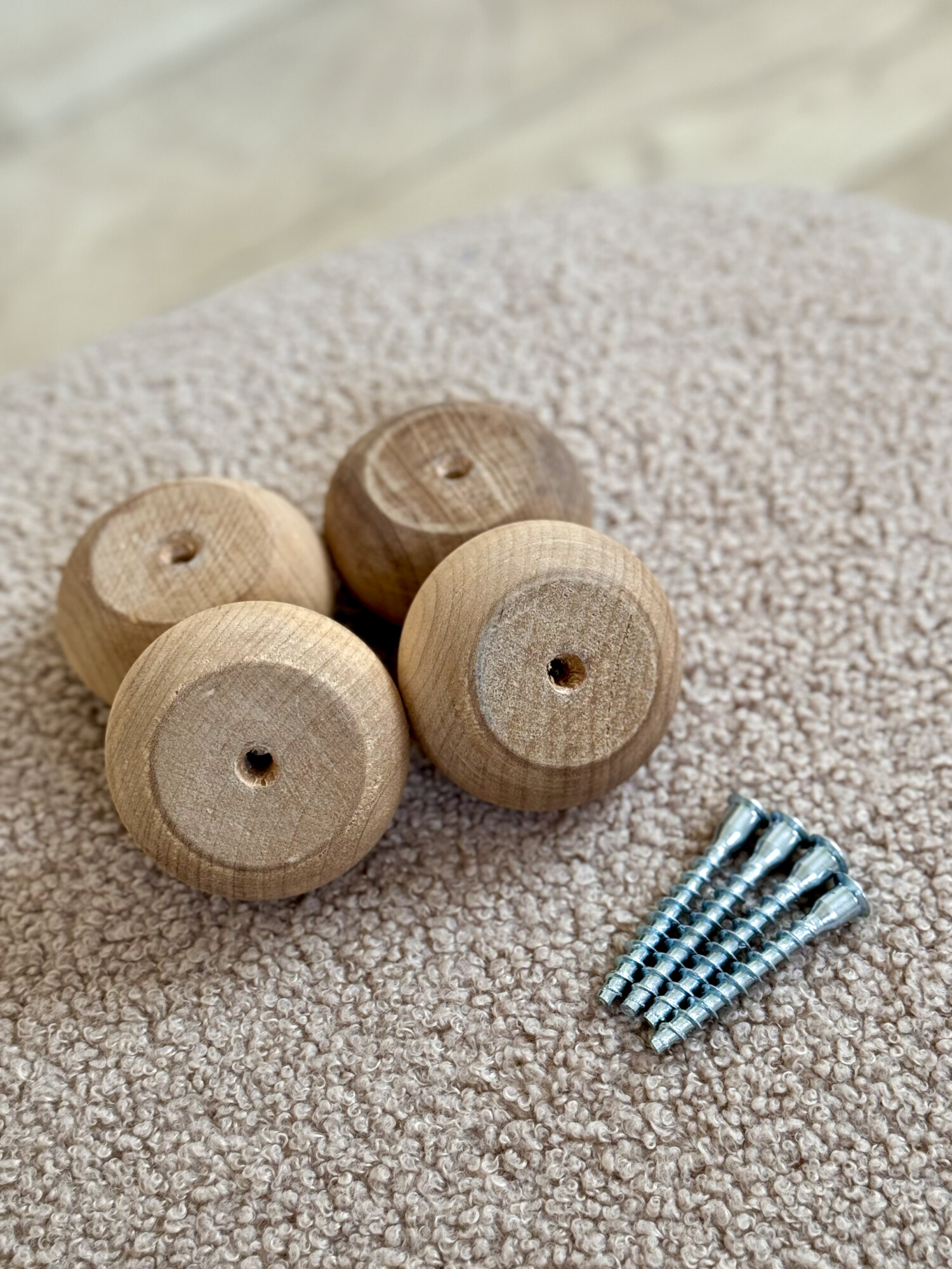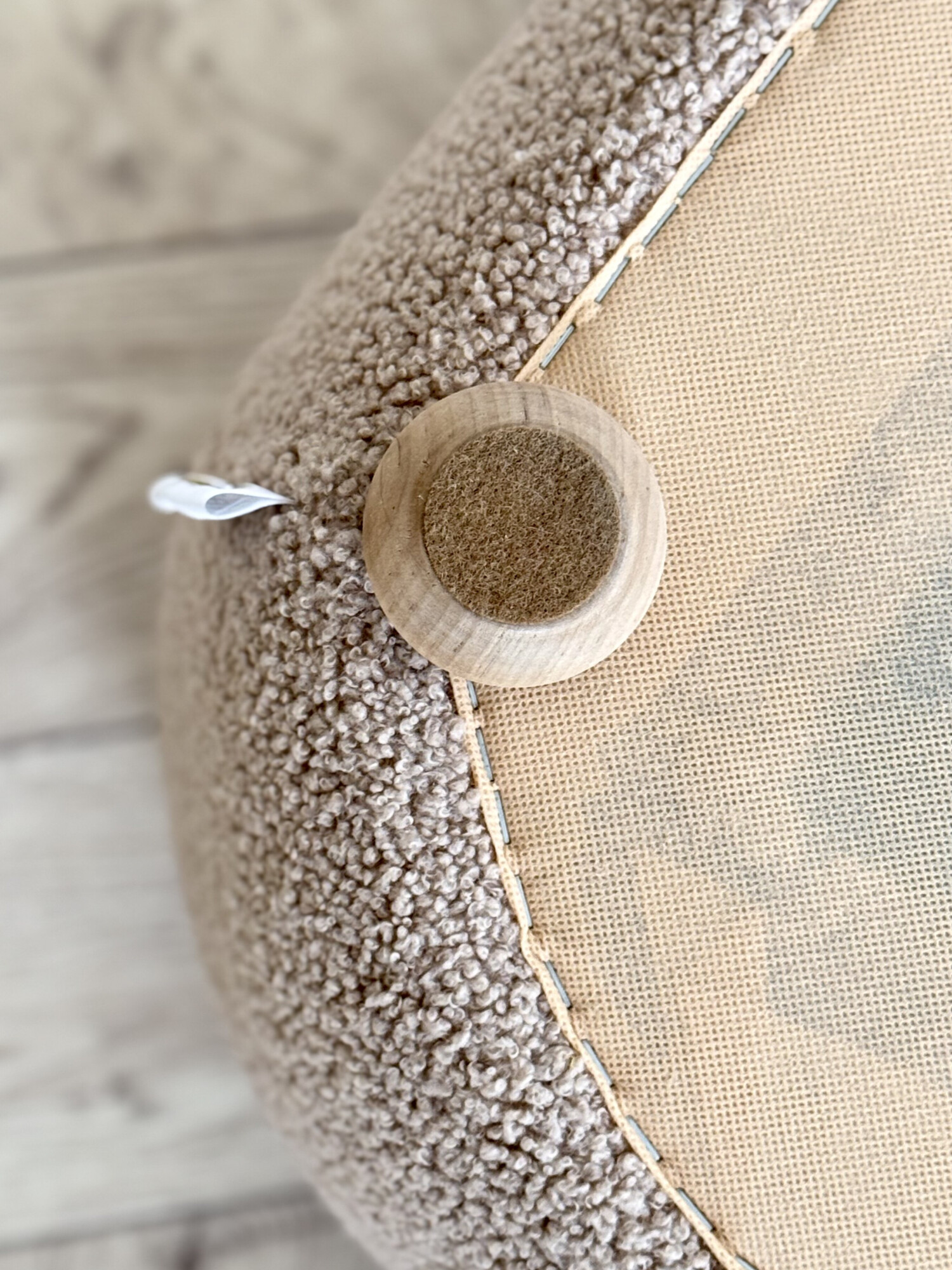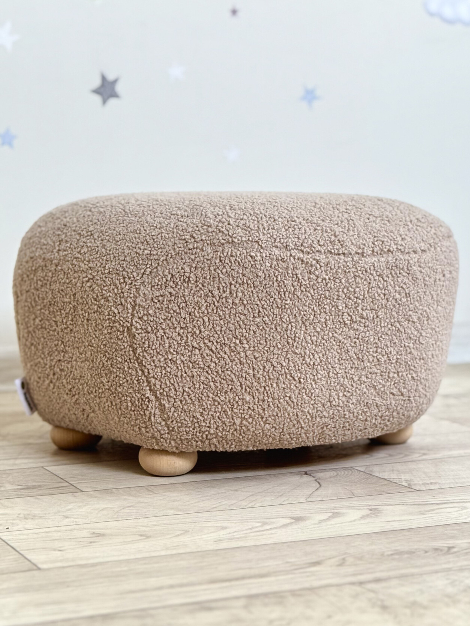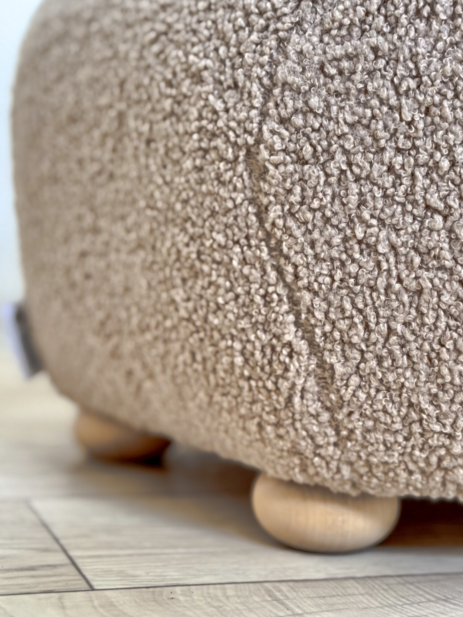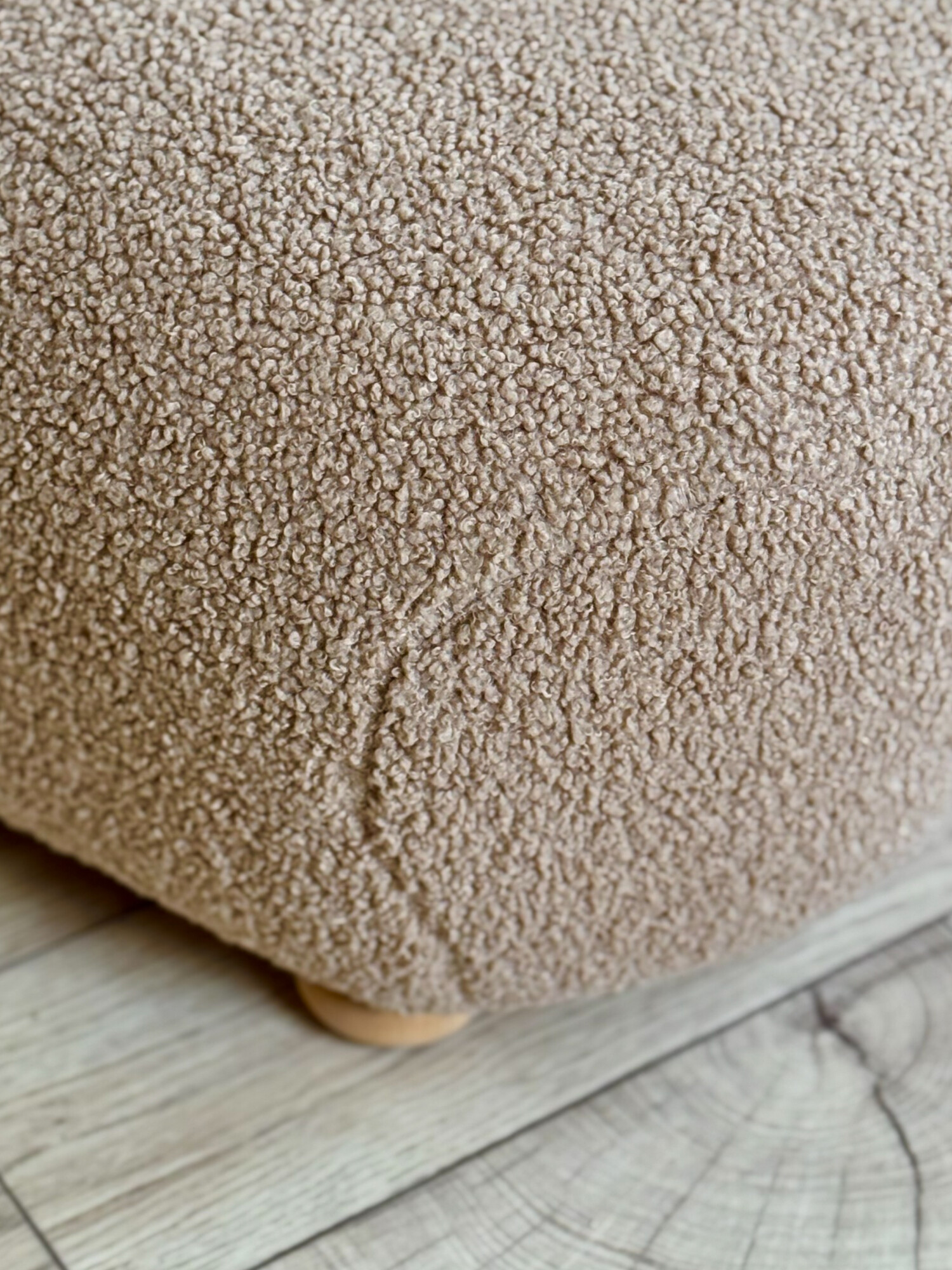 Каркас и ножки сделаны из натурального дерева, наполнитель - ППУ повышенной плотности, обтянут износостойкой тканью барашек. Все это делает наши пуфики не только красивыми и милыми но и прочными, надежными.