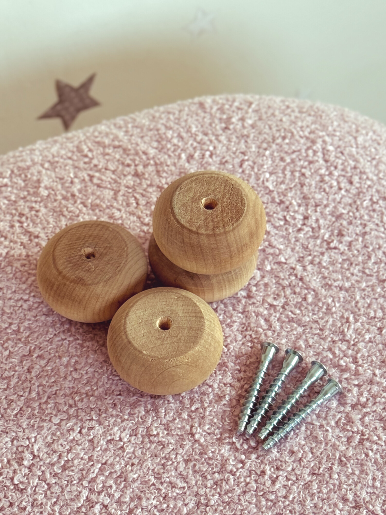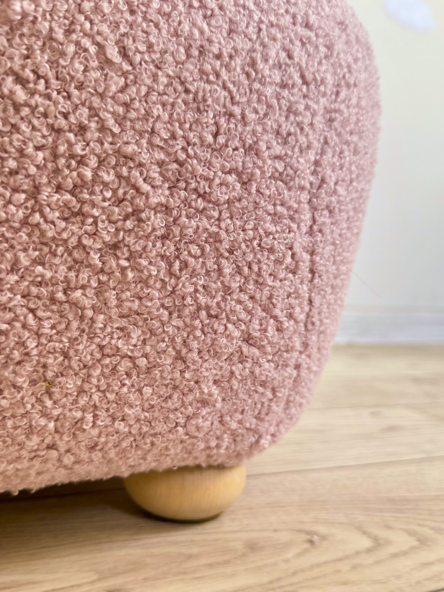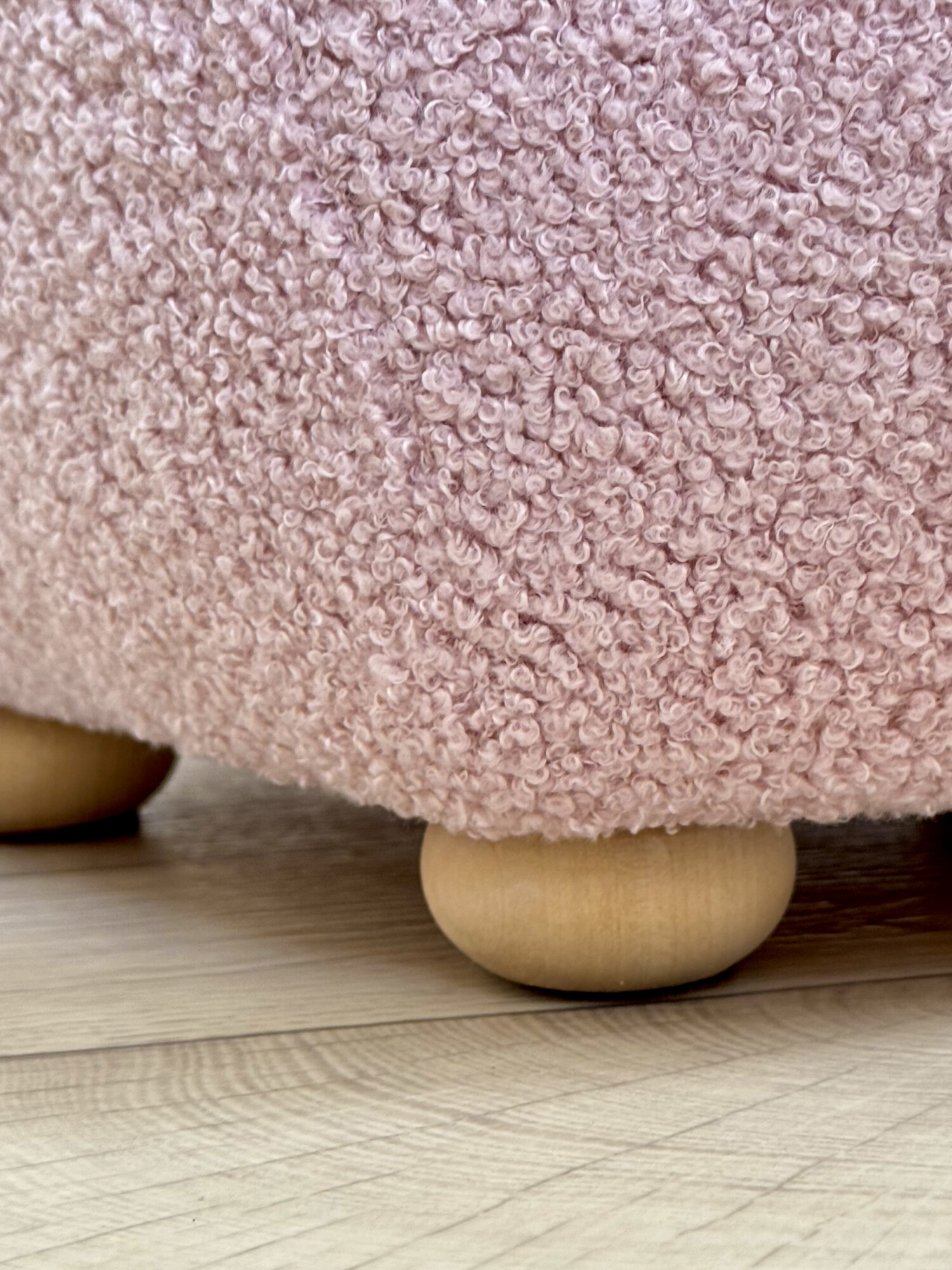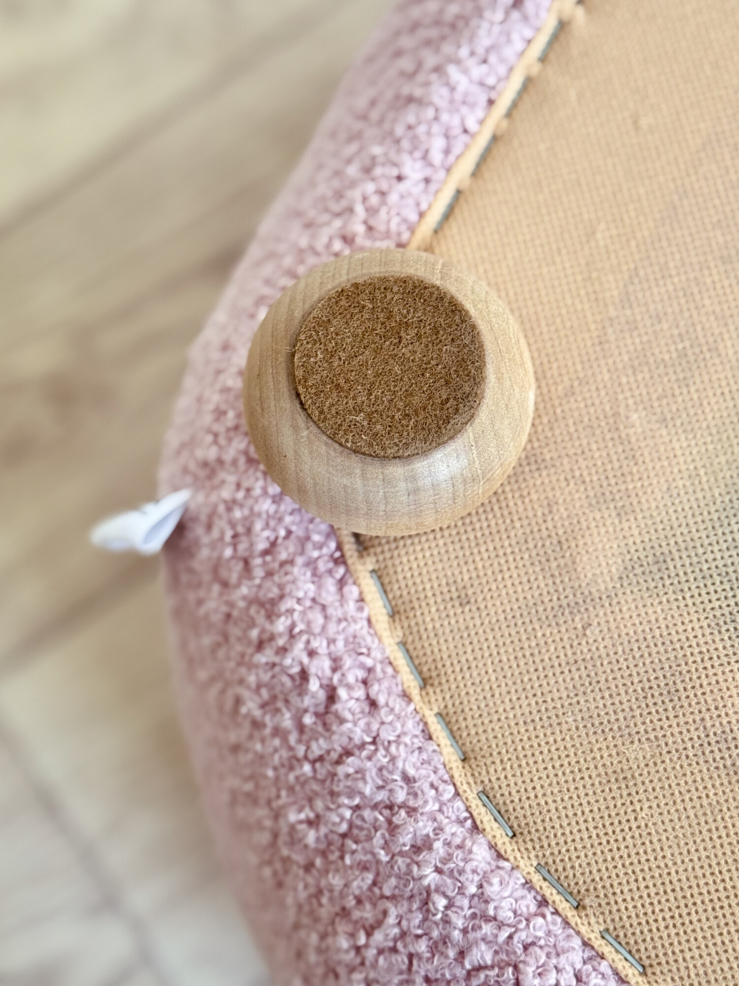 Каркас и ножки сделаны из натурального дерева, наполнитель - ППУ повышенной плотности, обтянут износостойкой тканью барашек. Все это делает наши пуфики не только красивыми и милыми но и прочными, надежными.