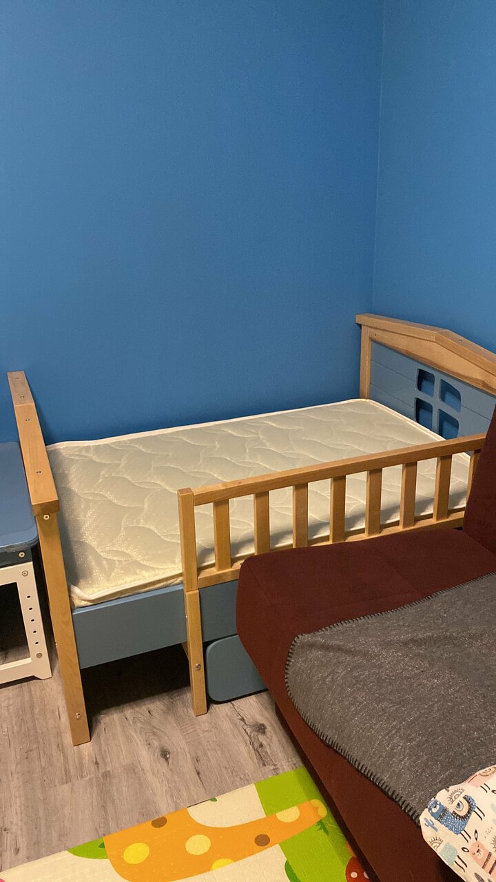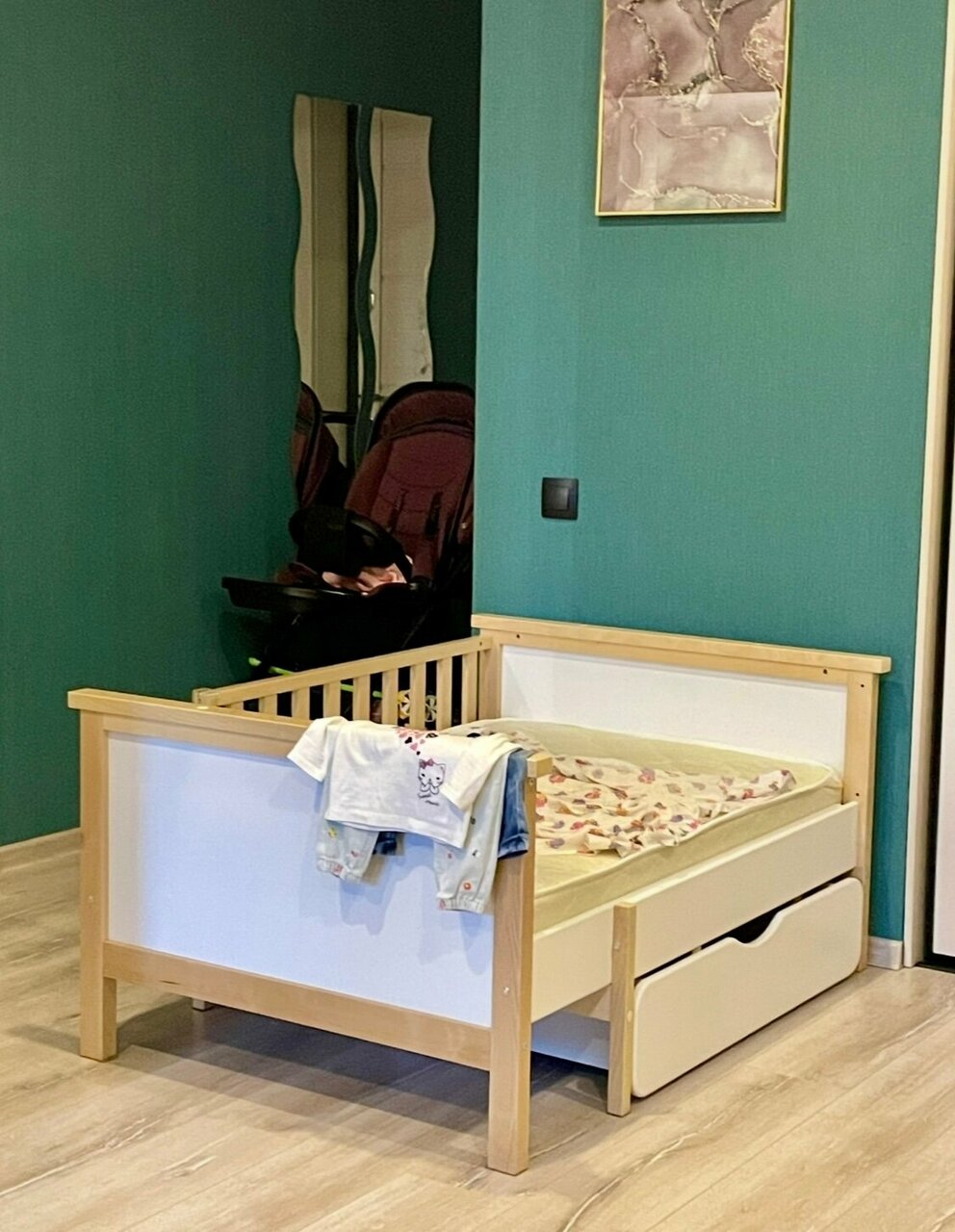 Заказали кроватку для дочки, так как нужно было вписать в нашу спальню, были ограничения по длине кррвати, не более 150 см, но и покупать при переселении в свою комнату снова новую кровать тоже не хотелось, поэтому такой вариант растущей кровати отлично нам подошёл. Качество отличное, выглядит стиль...Заказали кроватку для дочки, так как нужно было вписать в нашу спальню, были ограничения по длине кррвати, не более 150 см, но и покупать при переселении в свою комнату снова новую кровать тоже не хотелось, поэтому такой вариант растущей кровати отлично нам подошёл. Качество отличное, выглядит стильно, дочке тоже понравилось очень. Можно лечь с ребёнком вместе, на время укладывание, кроватка выдерживает взрослого Был неприятный запах от матраса (этого же бренда) но запах быстро ушёл