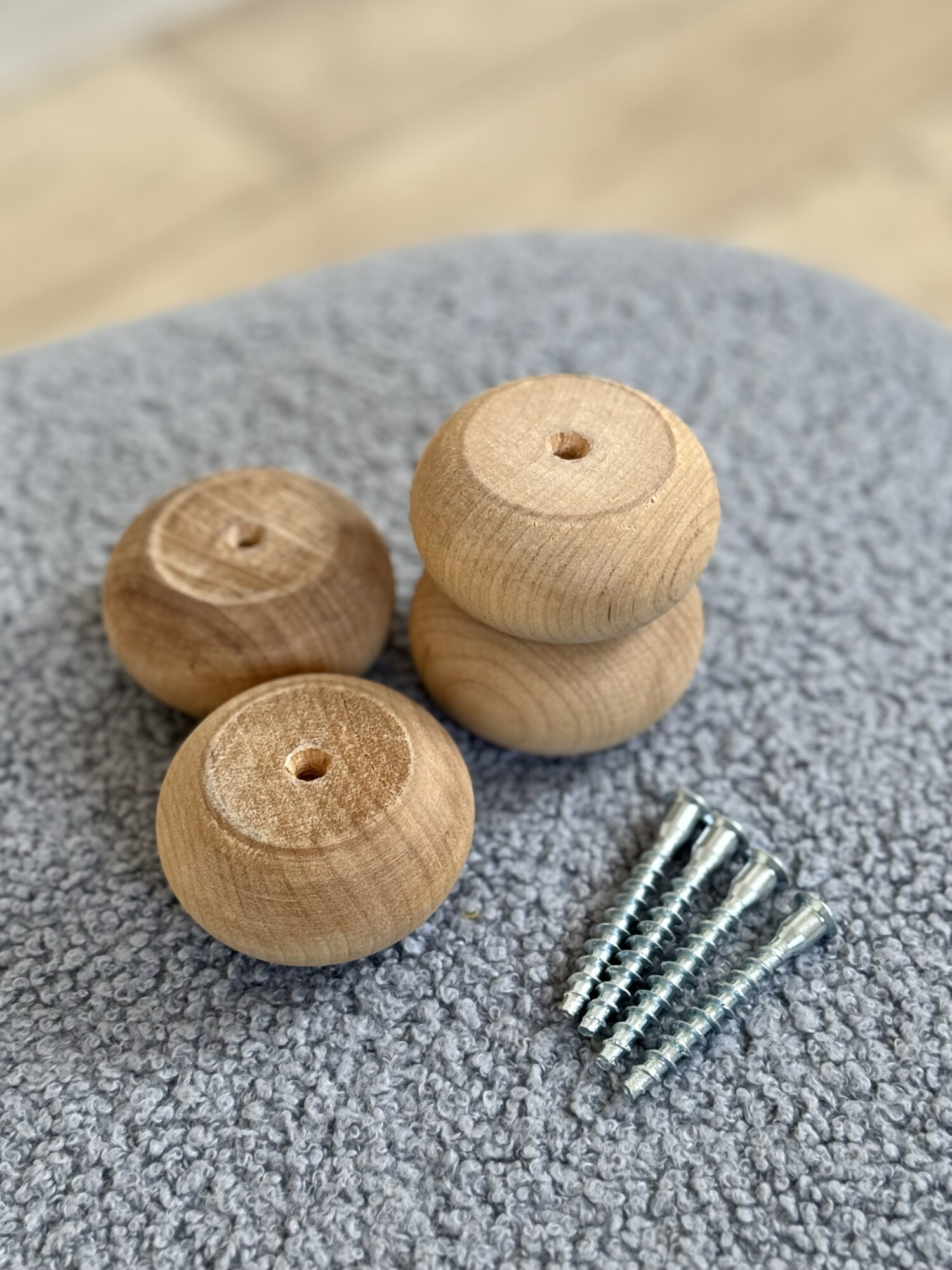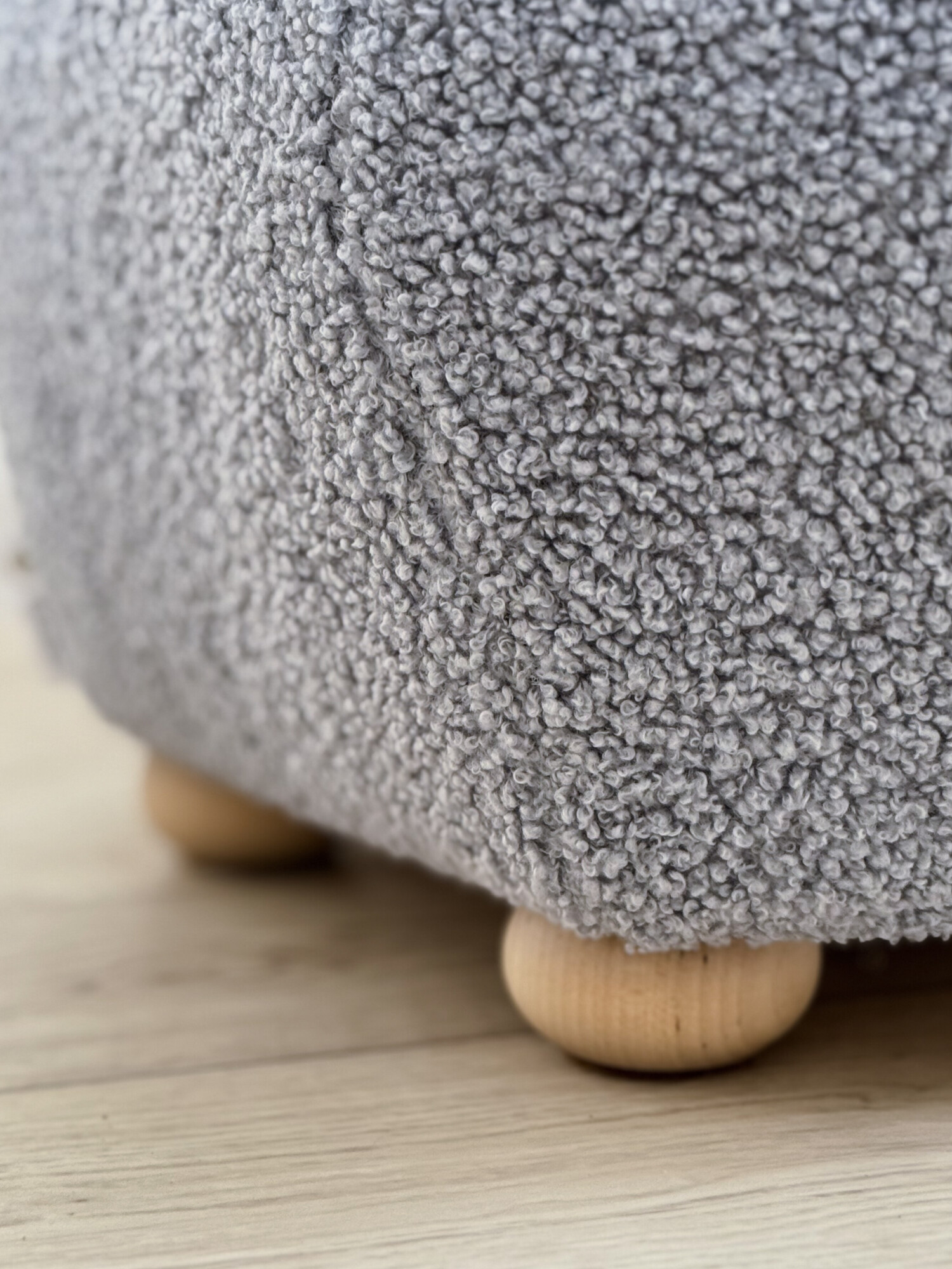 Каркас и ножки сделаны из натурального дерева, наполнитель - ППУ повышенной плотности, обтянут износостойкой тканью барашек. Все это делает наши пуфики не только красивыми и милыми но и прочными, надежными.