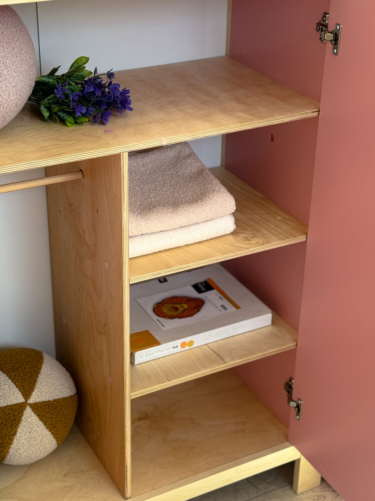 • Штанги по бокам шкафа — для органайзеров, вешалок и любимых мелочей.