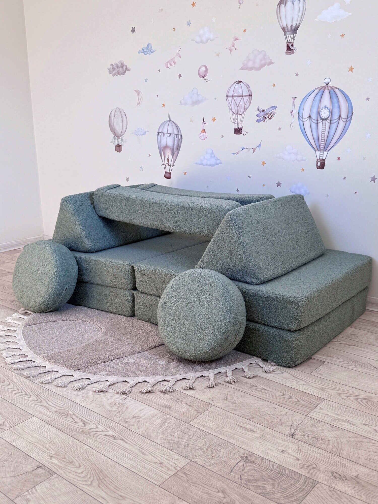 Этот диван способен принимать более 9 различных форм, стимулируя воображение и творческое мышление детей. Он легко превращается в замок, вигвам, корабль или ракету, предоставляя бесконечные возможности для игр и отдыха.