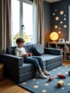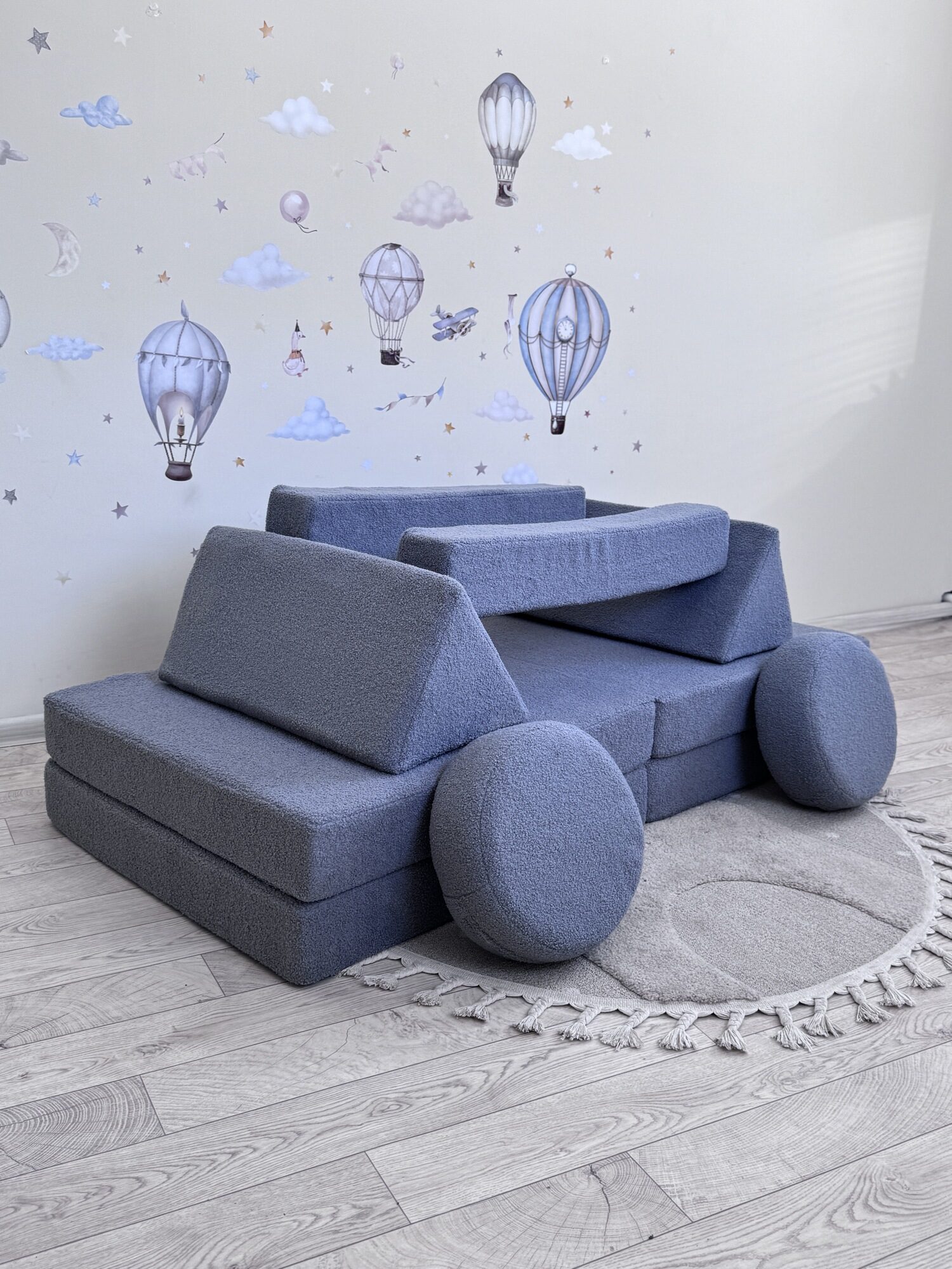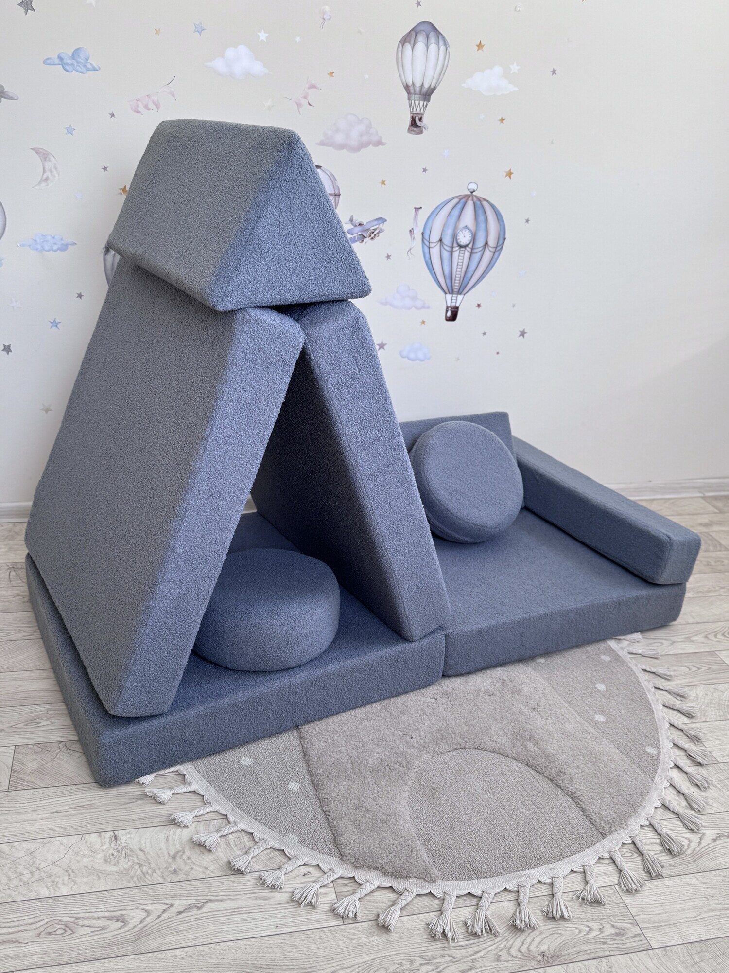 Этот диван способен принимать более 9 различных форм, стимулируя воображение и творческое мышление детей. Он легко превращается в замок, вигвам, корабль или ракету, предоставляя бесконечные возможности для игр и отдыха.