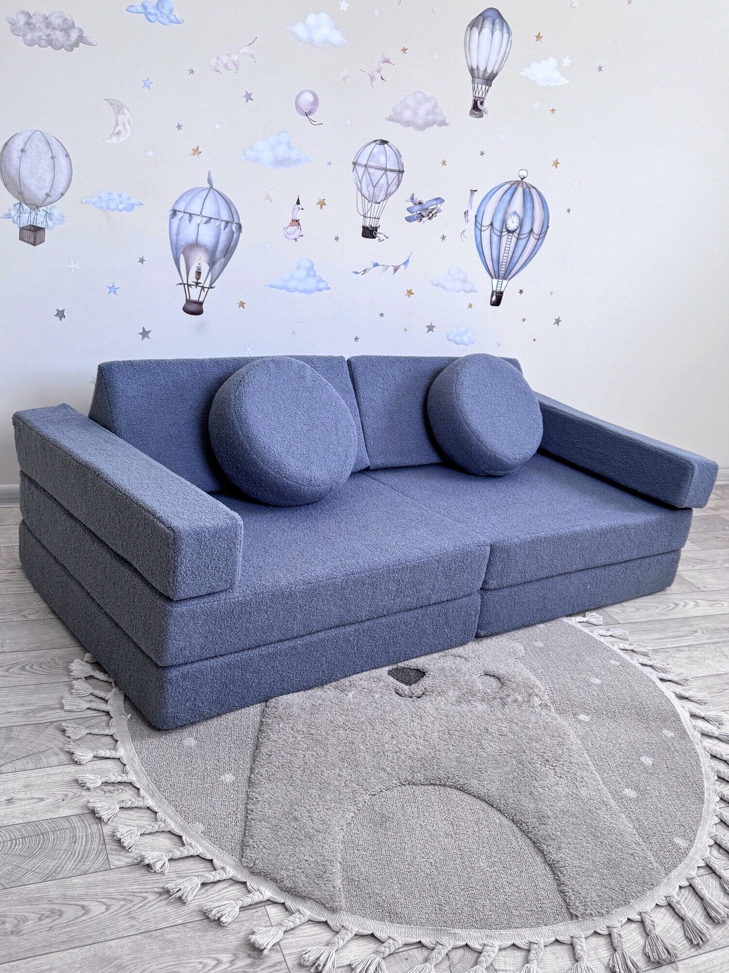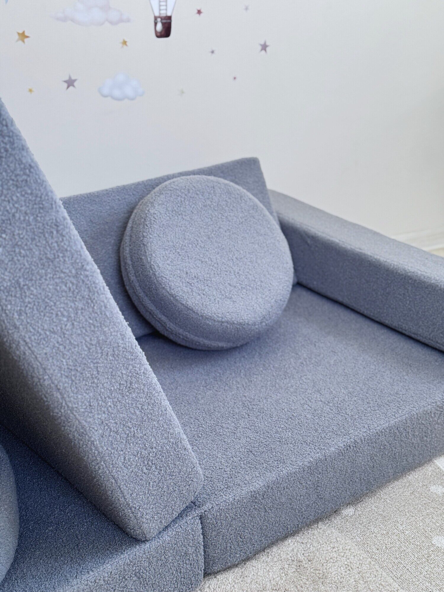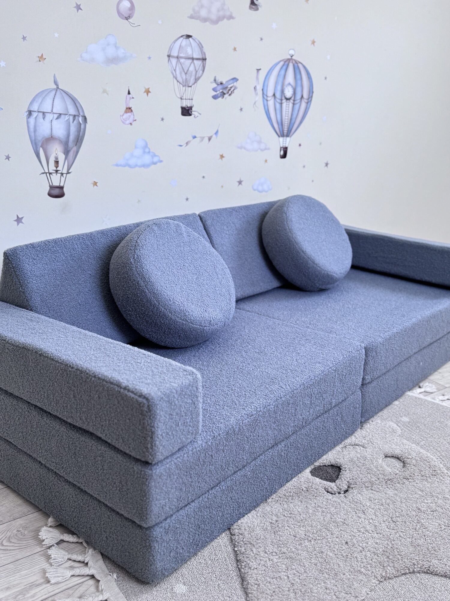Изготовленный из высококачественной пены и обитый мягкой тканью букле, диван обеспечивает комфорт и безопасность. Используемые материалы экологичны и гипоаллергенны, что делает его идеальным для детей от 1 до 14 лет. Отсутствие острых углов и твердых каркасов снижает риск травм во время активных игр.