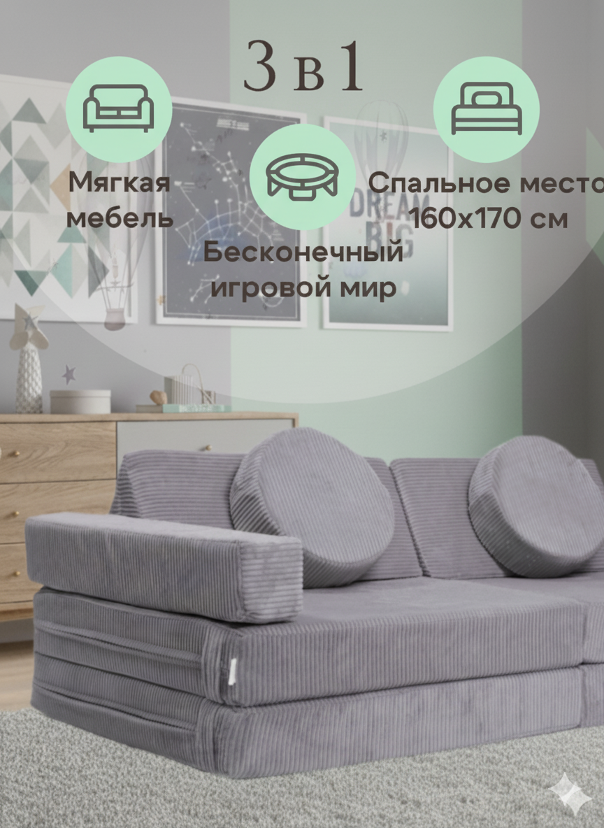 Подарите вашему ребенку пространство для творчества и комфорта с нашим детским диваном-трансформером!
