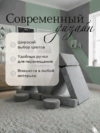 Диван состоит из 2 базовых матов, 2 треугольных, 2 круглых и 2 прямоугольных подушек, что позволяет создавать разнообразные конфигурации для игр и отдыха.