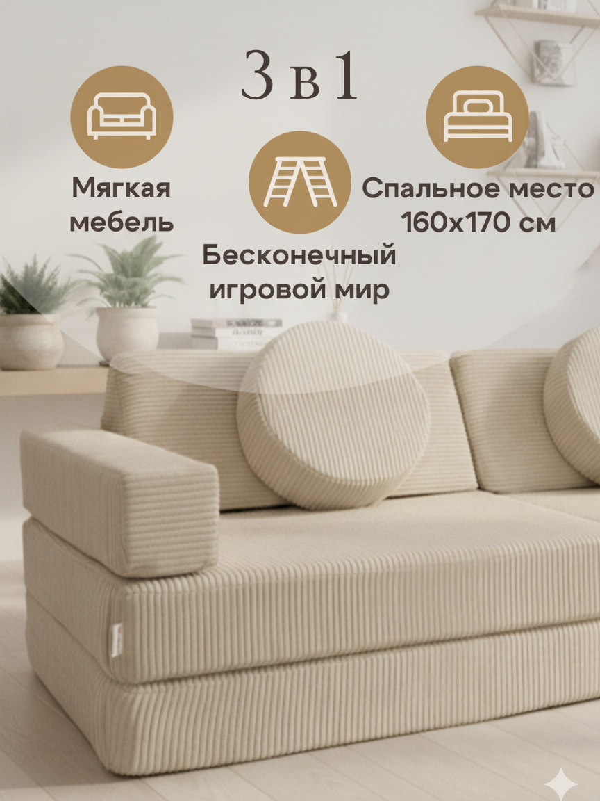 Диван детский игровой бескаркасный трансформер, созданный для того, чтобы каждый день вашего ребенка был наполнен радостью и приключениями.