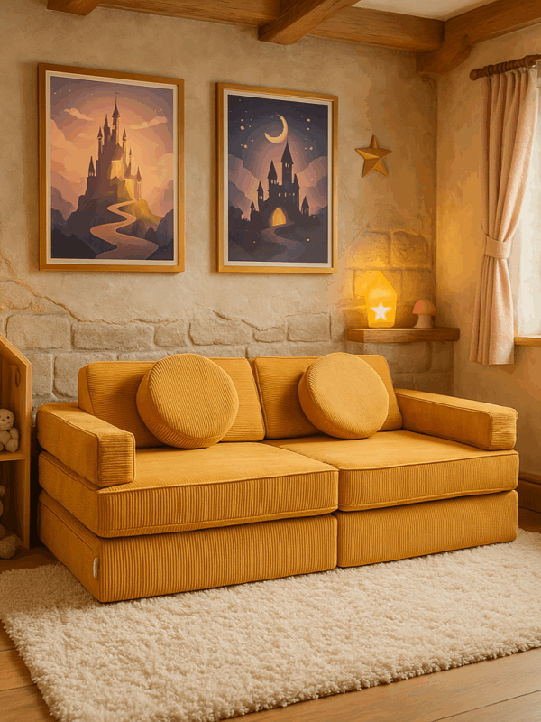 Этот диван способен принимать более 9 различных форм, стимулируя воображение и творческое мышление детей. Он легко превращается в замок, вигвам, корабль или ракету, предоставляя бесконечные возможности для игр и отдыха.