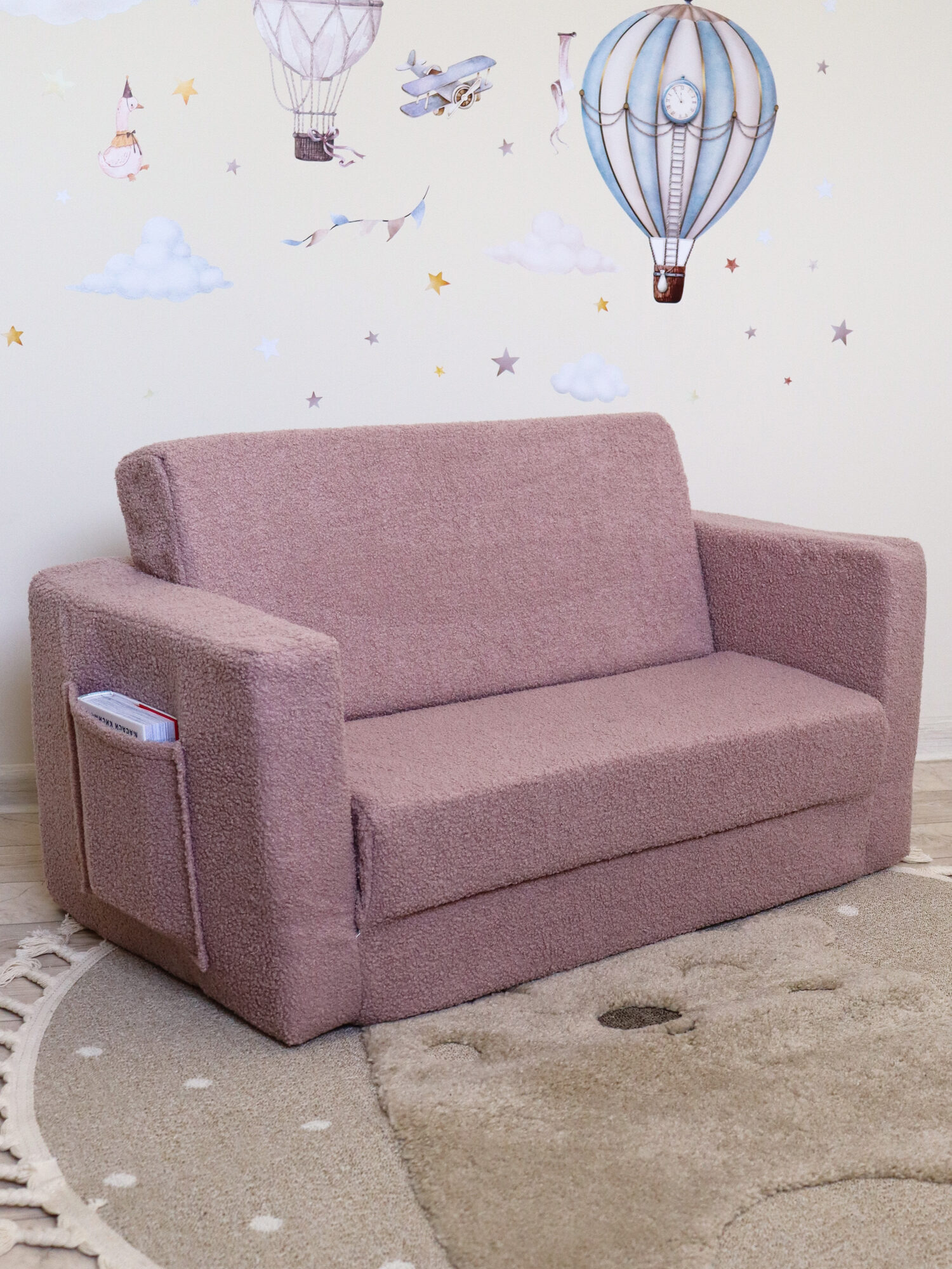 Этот раскладной диванчик - удивительное решение для детской комнаты, который порадует и вас, и вашего малыша. Полностью бескаркасный, он изготовлен из качественного поролона, обтянутого нежной тканью букле. Это обеспечивает мягкость и комфорт, а также сохраняет форму. Съёмный чехол, который в любой момент можно снять и постирать, добавит практичности дивану.