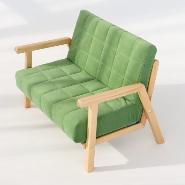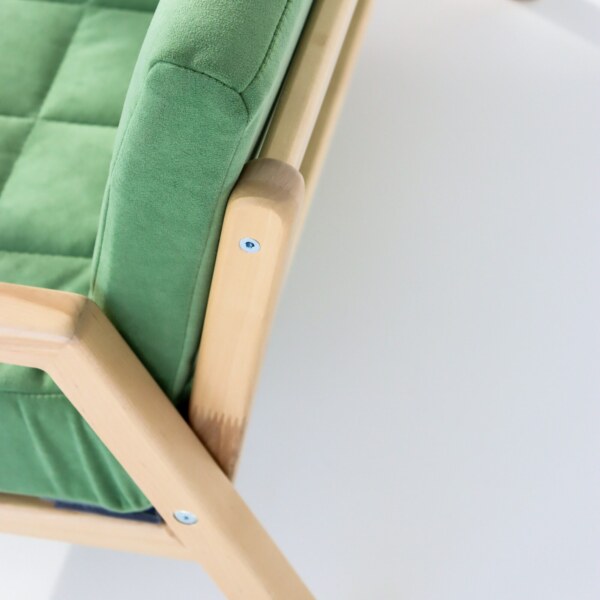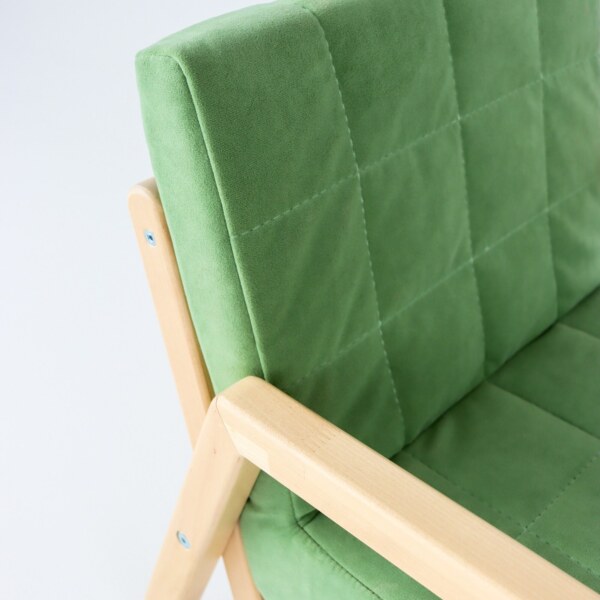 Мягкий диванчик из массива Березы будто создан для детских игр и развлечений. Мы рады делать счастливыми малышей и их родителей, поэтому наши креслица и диванчики можно поистине назвать - волшебными. Подходят малышам от 1 года до 7 лет Нагрузка на кресло - до 80 кг, может сидеть не только малыш но и родители. Материал каркаса - берёза (покрыта лаком), материал подушек - мебельный велюр, наполнение - пенополиуретан, Все уголки мебели скругленные и хорошо отшлифованные. Кресло с подлокотниками для большей безопасности прекрасно подойдёт к любому нашему столику. Все размеры согласно ГОСТу.