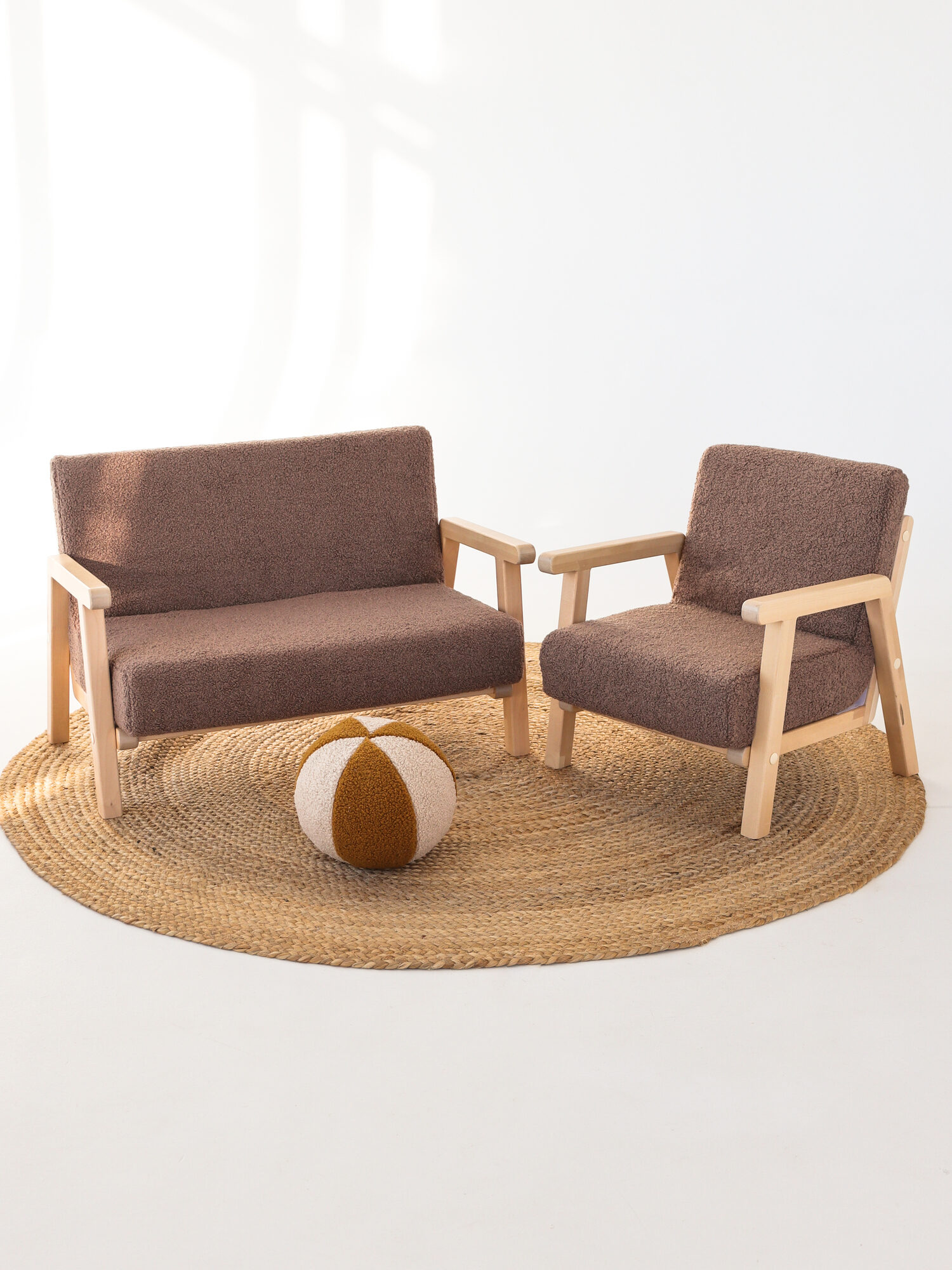 Мягкий диванчик из массива Березы будто создан для детских игр и развлечений. Мы рады делать счастливыми малышей и их родителей, поэтому наши креслица и диванчики можно поистине назвать - волшебными. Подходят малышам от 1 года до 7 лет Нагрузка на кресло - до 80 кг, может сидеть не только малыш но и родители. Материал каркаса - берёза (покрыта лаком), материал подушек - искусственный мех, наполнение - пенополиуретан, Все уголки мебели скругленные и хорошо отшлифованные. Кресло с подлокотниками для большей безопасности прекрасно подойдёт к любому нашему столику. Все размеры согласно ГОСТу.