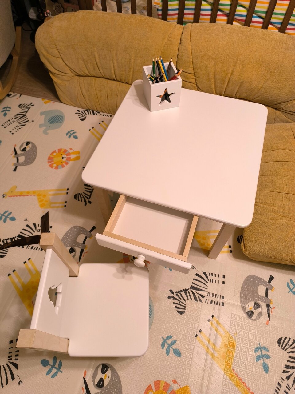 Отличный стол и стульчик! Качество прекрасное, все аккуратно сделано, мебель максимально безопасная для ребёнка. Выглядит очень эстетично ! А также отдельное спасибо, за индивидуальный подход к выполнению заказа ! Нам был интересен комплект растущей мебели в бело-бежевом цвете с мишкой на стуле (в о...Отличный стол и стульчик! Качество прекрасное, все аккуратно сделано, мебель максимально безопасная для ребёнка. Выглядит очень эстетично ! А также отдельное спасибо, за индивидуальный подход к выполнению заказа ! Нам был интересен комплект растущей мебели в бело-бежевом цвете с мишкой на стуле (в оригинале там ёлка) , и нашу просьбу выполнили - нам вдвойне приятно за такую возможность! Благодарим за мебель, ребёнок оценил и с удовольствием пользуется 😊 Все пришло целое, аккуратно упаковано, полный комплект. Собрали быстро. Благодарим за подарок в виде держателя для бумаги и рулон бумаги! Очень приятно ! Обязательно будем вас рекомендовать!
