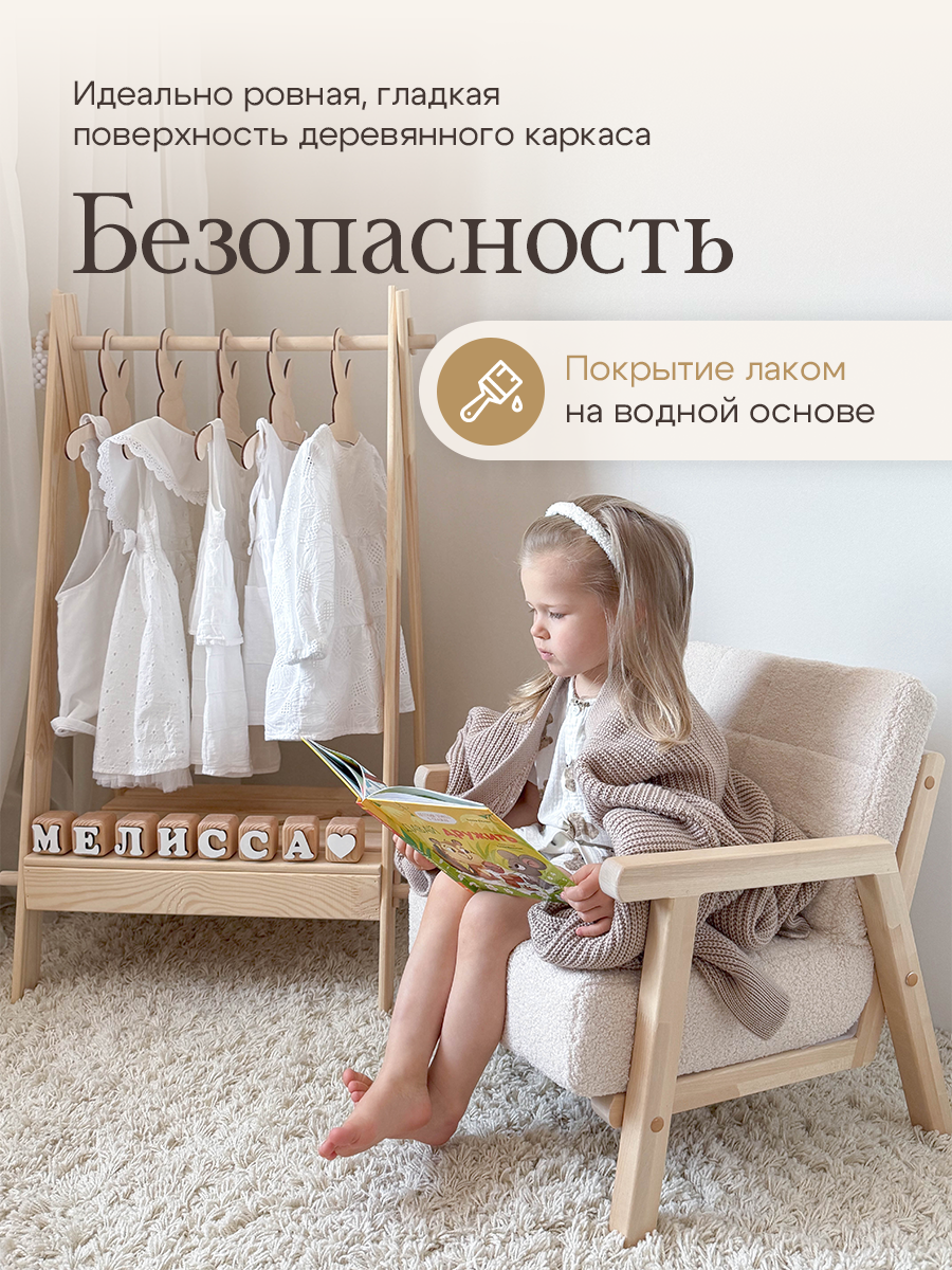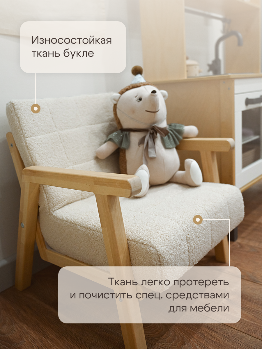 Мягкое детское кресло, из массива Березы, будто создано для детских игр и развлечений. Мы рады делать счастливыми малышей и их родителей, поэтому наши креслица и диванчики можно поистине назвать - волшебными. Подходят малышам от 1 года до 7 лет Нагрузка на кресло - до 80 кг, может сидеть не только малыш но и родители. Материал каркаса - берёза (покрыта лаком), материал подушек - искусственный мех, наполнение - пенополиуретан. Все уголки мебели скругленные и хорошо отшлифованные. Кресло с подлокотниками для большей безопасности прекрасно подойдёт к любому нашему столику. Все размеры согласно ГОСТу.