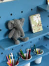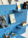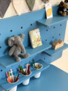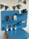 Эта доска пегборд создана специально для детской комнаты. Она помогает ребёнку научиться порядку, аккуратно хранить свои вещи и чувствовать себя хозяином собственного пространства.