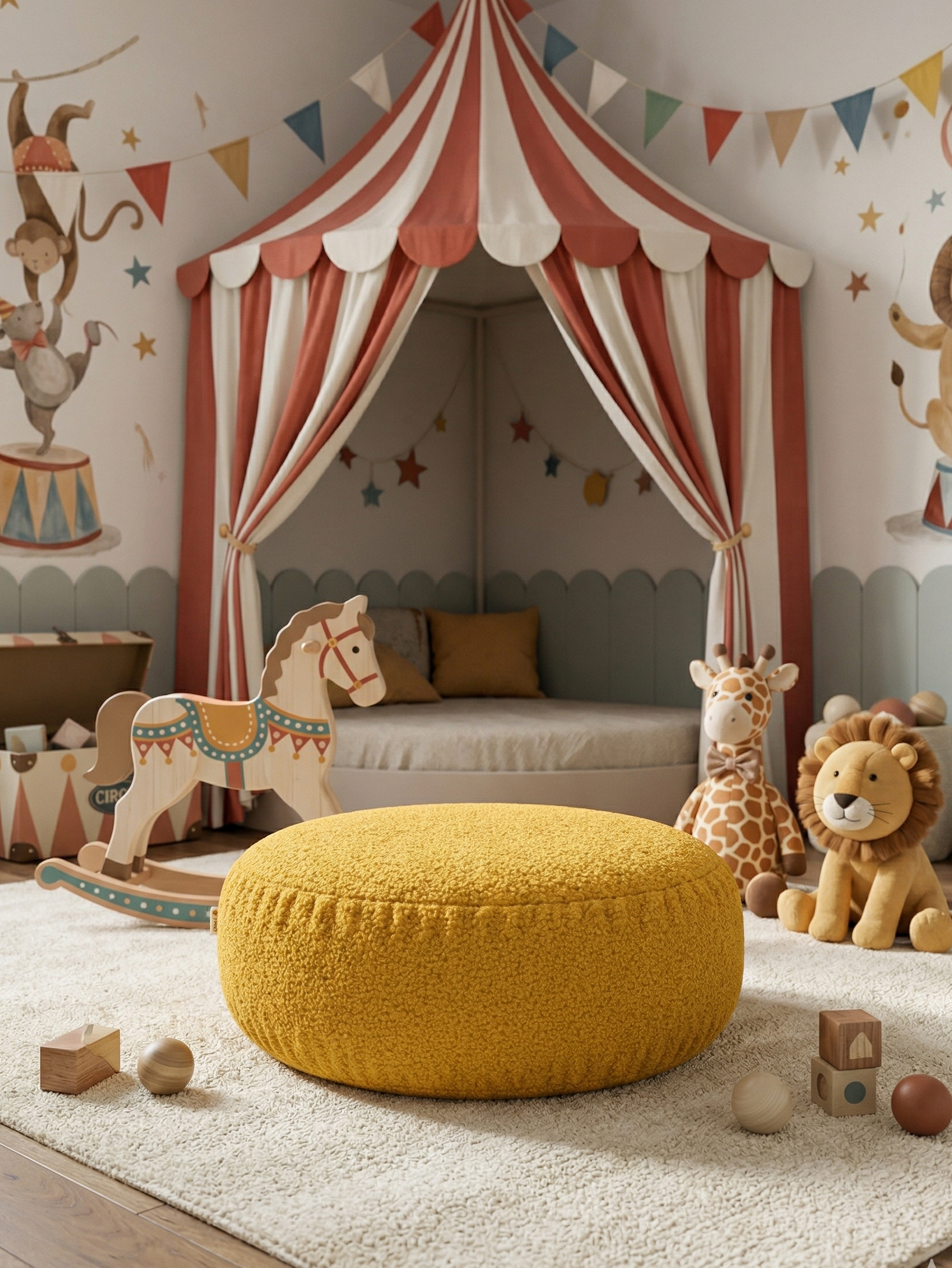 Этот круглый детский пуф создан для того, чтобы ребёнку было удобно сидеть, играть, отдыхать и просто находиться в красивом пространстве. За счёт мягкой формы и приятной текстуры он делает интерьер более тёплым, уютным и завершённым 🧸