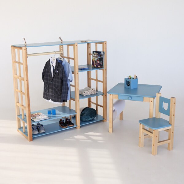Особенности и преимущества детского шкафа Montessori от SIMBA из коллекции Forest Blue: