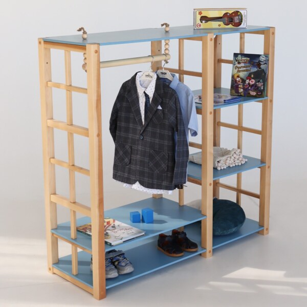 Детский шкаф Montessori из коллекции Forest Blue - идеальное решение для создания организованной и функциональной обстановки в детской комнате вашего мальчика.