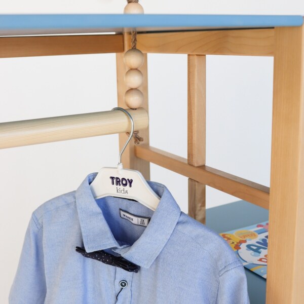 - Шкаф разработан с учетом принципов методики Монтессори, способствующей развитию самостоятельности и организации у детей. Он обладает низкими ящиками и открытыми полками, позволяя малышу самостоятельно доставать и убирать свои вещи, развивая навыки самообслуживания и порядка. Подвесная планка на низкой высоте обеспечивает легкий доступ к одежде, позволяя вашему мальчику самостоятельно выбирать наряды.